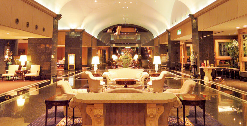 重厚感あるインテリアが印象的なロビー。華やかな街のざわめきから離れて、ゆったりとした時間が流れています。